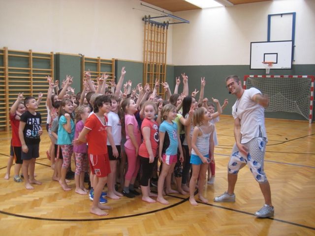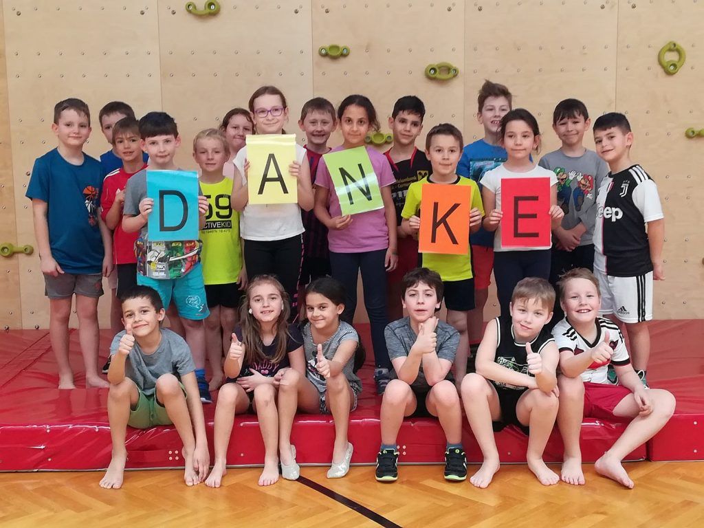 Das Programm will mehr Bewegung und Sport in den Alltag von Kindergarten- und Volksschulkindern bringen. Die Umsetzung wird durch die Sport-Dachverbände ASKÖ, ASVÖ und in unserem Fall der SPORTUNION sichergestellt. Ziel ist es, möglichst viele Kinder in den Österreichischen Volksschulen und Kindergärten zu bewegen. In diesen Stunden sind die SchülerInnen unter der engagierten und kompetenten Leitung von Gabriele Dworak und der Assistenz von Caroline Nemeth mit Feuereifer bei der Sache.