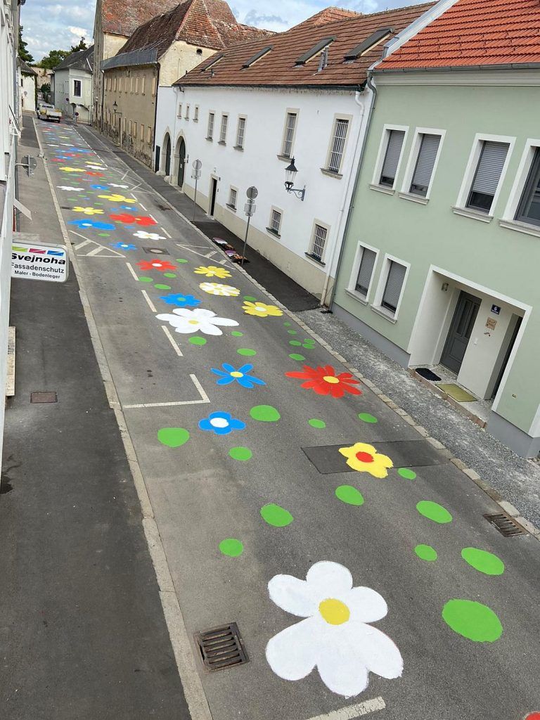 Im Zuge dieses Projektes haben unsere SchülerInnen der 3. Klassen die Straße vor unserer Schule zum Thema passend farbig gestaltet.
