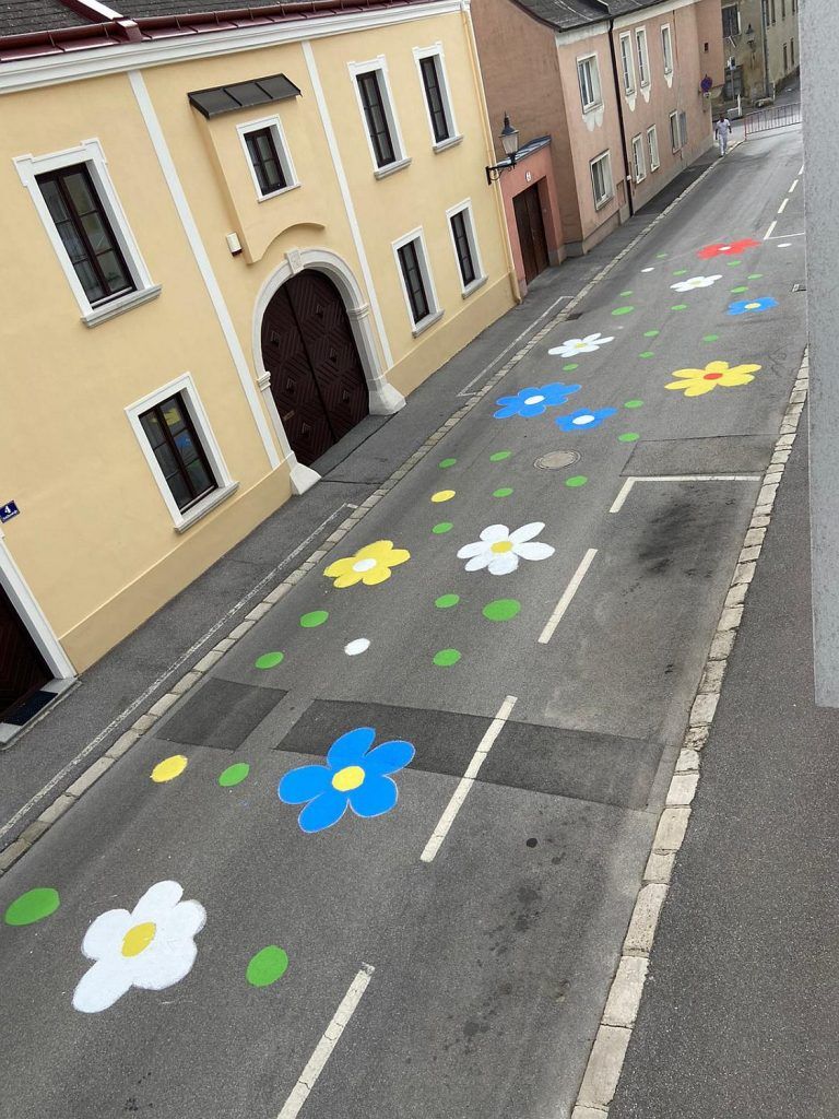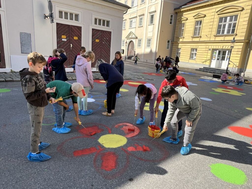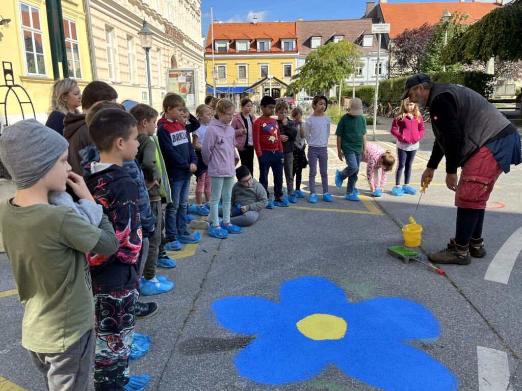 17.9.: Straßenmalen „Blühende Straßen“ der 3. Klassen im Rahmen der Mobilitätswoche