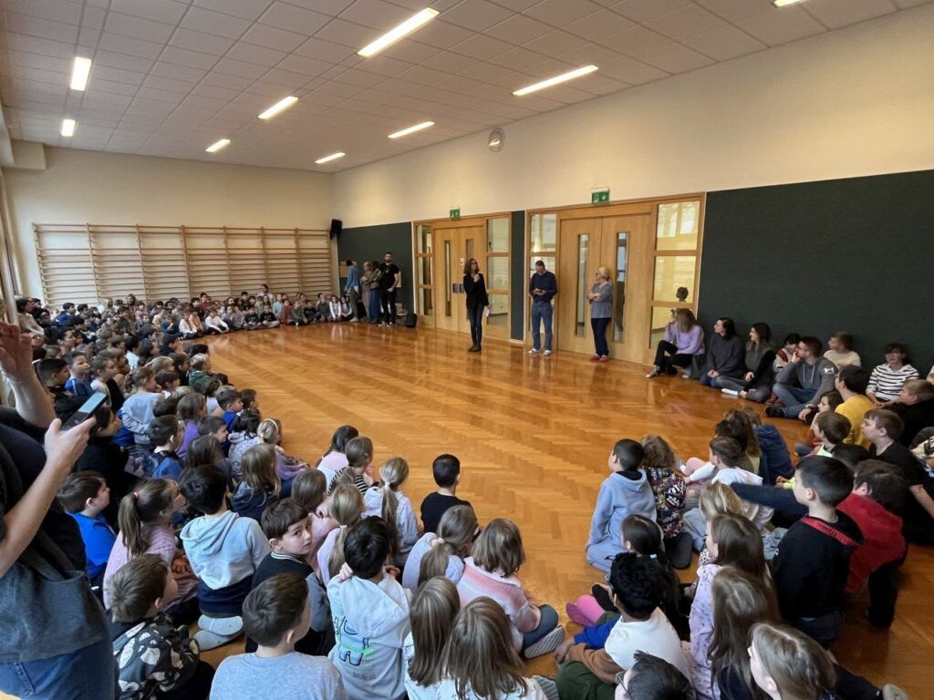 Zum Abschluss fand eine schulinterne Feier mit allen Schüler*innen, Pädagog*innen, Assitent*innen und den Schulwarten der Volksschule und der Allgemeinen Sonderschule im Gymnastikraum statt.